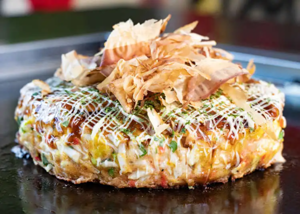오코노미야끼는 타코야끼와 더불어 오사카를 대표하는 음식 중 하나인데요. 오코노미는 일본어로 취양이란 뜻이고 야키는 구이라는 뜻으로 한국어로 직역한다면 취양대로 먹는 구이(전)이라고 해석할 수 있습니다. 밀가루에 잘게 썬 양배추가 기본적인 베이스가 되고 그 안에 자신의 취향대로 숙주, 고기, 볶음면, 오징어, 돼지고기, 계란등을 넣어서 먹는 전으로 일본에서도 오사카가 오코노미야키의 원조로 꼽습니다.