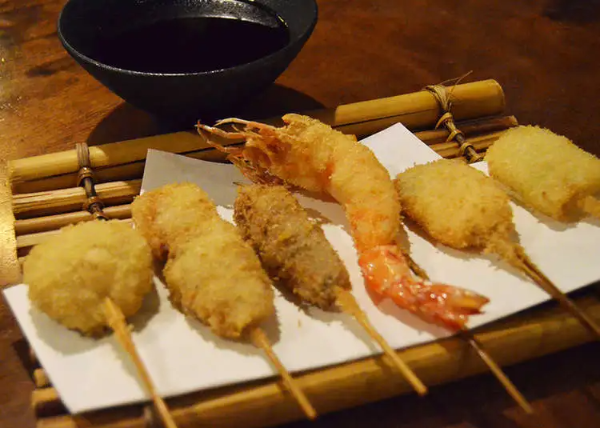 도쿄에 야키토리가 있다면 오사카는 쿠시카츠가 있습니다. 쿠시카츠는 신선한 재료들을 꼬치에 꽂아서 바로 빵가루에 묻혀 기름에 튀겨내는 요리입니다. 정말 다양한 재료들을 튀겨주시기 때문에 취향에 맞게 먹을 수 있는 튀김요리입니다. 사실 신선한 재료와 빵가루, 튀김은 맛이 없을 수 없는 조합이지만 맛있는 소스까지 더해지면 천상의 맛을 느끼 실수 있습니다.