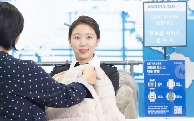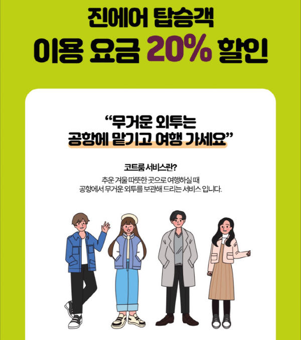 진에어는 크린업에어와 협업으로 코트룸 서비스를 실시합니다.