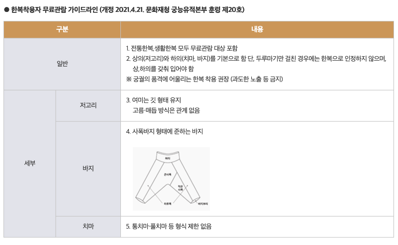 한복 착용자는 한복 무료관람 가이드라인 데 따라 무료관람이 가능하기 때문에 가이드라인을 확인하세요.