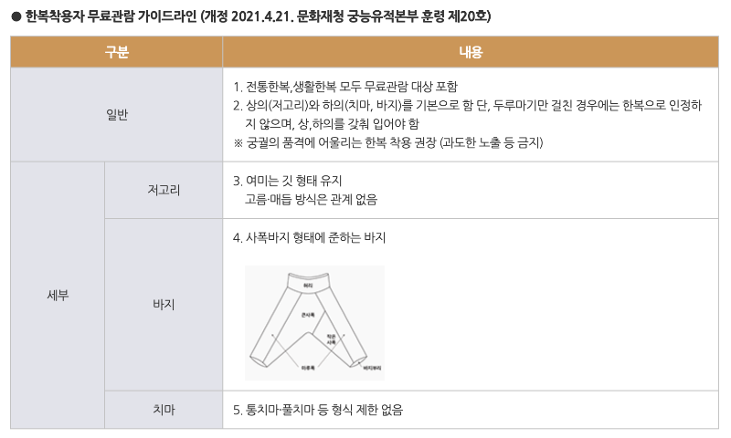 - 한복 착용자 (한복 무료 관람 가이드라인에 적합한 자)
