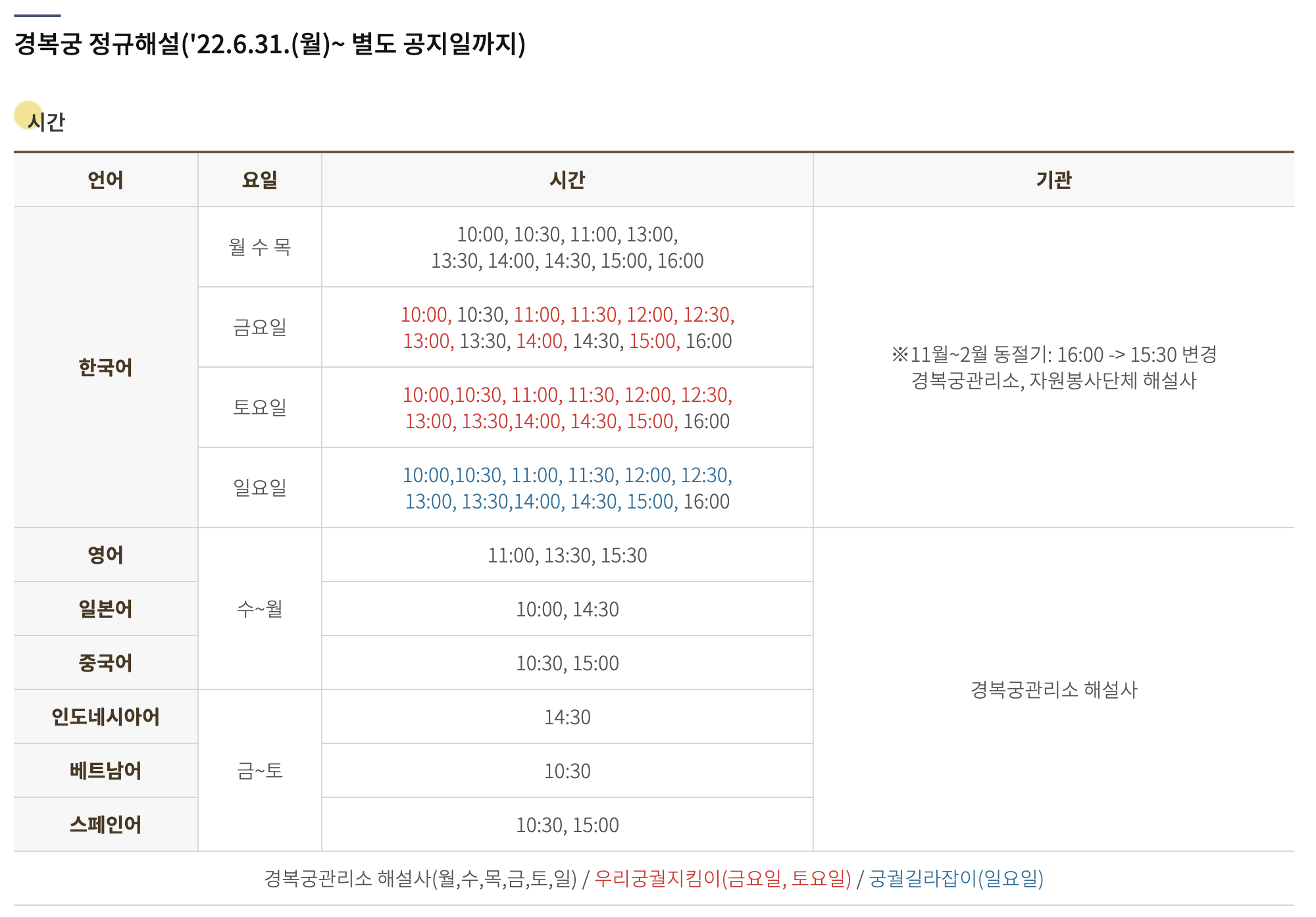 - 시작하는 곳 : 경복궁 안내실 앞 (흥례문 안쪽)