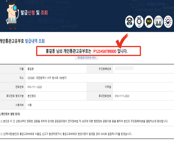 4. 발급된 13자리 부호가 바로 개인통관고유부호입니다.