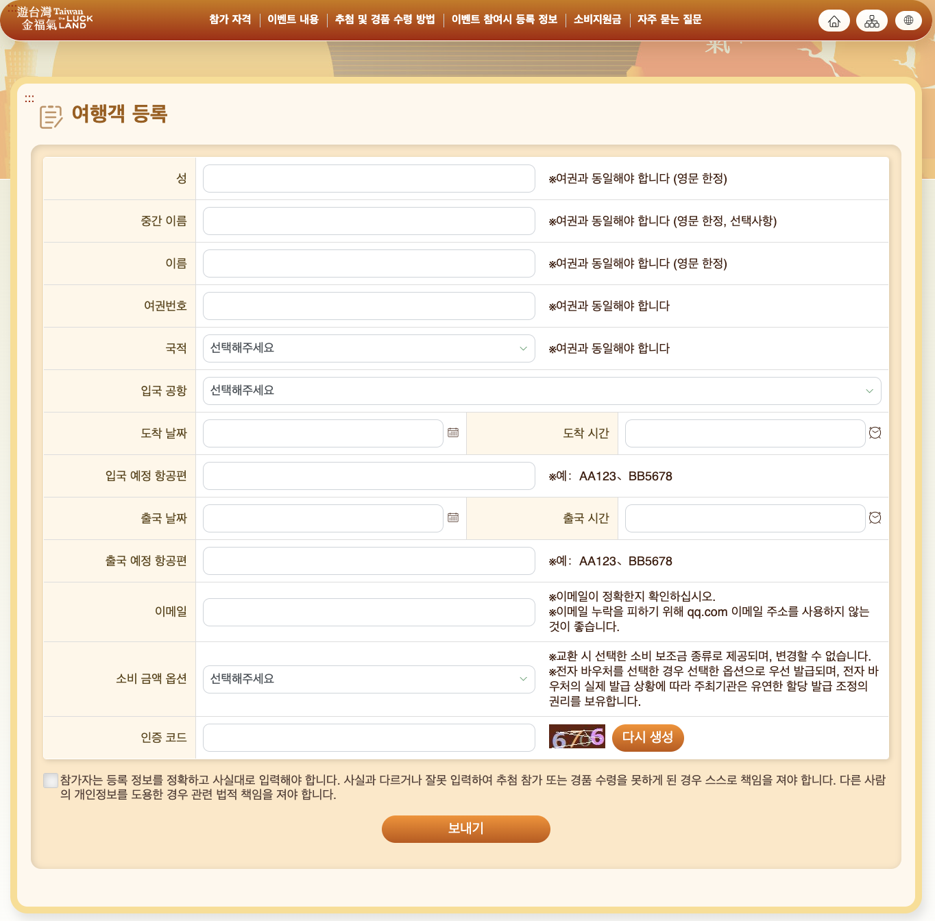 대만 이외의 국가의 여권을 소지자가 이벤트에 참여하고 대만에 입국하면 당첨 결과를 확인하고 당첨이 되면 5,000 대만달러 (한화 약 20만 원) 상당의 바우처 또는 숙박 할인 쿠폰을 받을 수 있는 이벤트인데요. 신청만 하면 모두 받을 수 있는 것은 아닙니다. 그럼 조금 더 자세하게 정리해서 알려드리겠습니다.