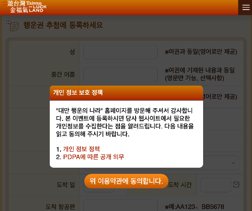 2단계 : 대만공항 입국장에서 행운권을 확인합니다.