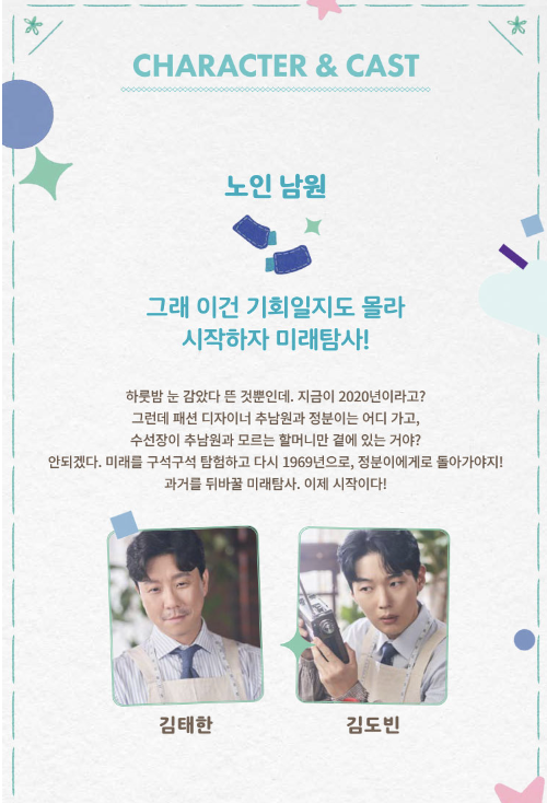 아폴로 11호가 달을 향해 쏘아 올려진 1969년의 밤. 동네 최고의 수선장이 남원은 편지한 통을 받으며 불가능할 것만 같았던 패션 디자이너라는 꿈에 한 발짝 다가선다. 사랑하는 정분이와의 멋진 내일을 꿈꾸던 남원은 점점 커지는 달에 놀러 쓰러지고 다시 눈을 뜬 곳은 2020년의 어느 날 당황스럽고 어리둥절한 남원 앞에 '영감, 지금은 2020년이고, 우린 70이야!'라고 말하는 선희 할머니가 나타난다. 어떻게든 사랑하는 정분이가 있는 1969년으로 돌아가기 위한 미래탐사를 시작한다.