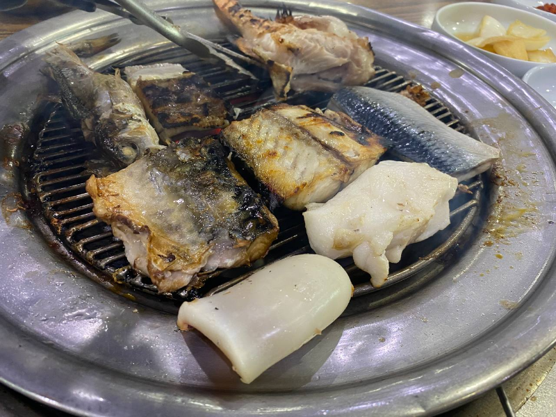 생선에 따라 익는 시간이 다르기 때문에 먼저 익혀진 생선을 앞접시에 주시는 편이고 개인적으로 먹었을때 인원수에 맞게만 시키셔도 모자란다는 생각이 들지 않을 정도로 생선구이를 드실수 있습니다.