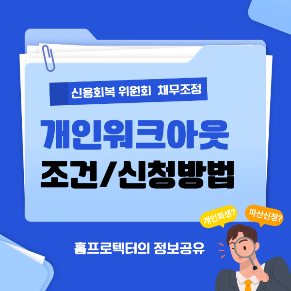 살아가다가 보면 예기치 않게 금전적인 어려움이 찾아올 때가 있습니다. 이번 포스팅에서는 실직 혹은 사업부진으로 인해 소득이 부족하여 3개월 이상 연체를 하신 분들에게 도움이 될 만한 정보입니다. 신용회복위원회에서 진행하는 채무조정 제도인 개인워크아웃이라는 제도에 대한 내용인데요. 신용회복위원회의 개인워크아웃 제도는 무엇인지 조건은 어떻게 되는지 또한 신청하면 어떠한 감면 혜택을 받을 수 있는지에 대해서 자세히 설명드리고 신청방법까지 안내해 드리겠습니다. 그럼 시작합니다.