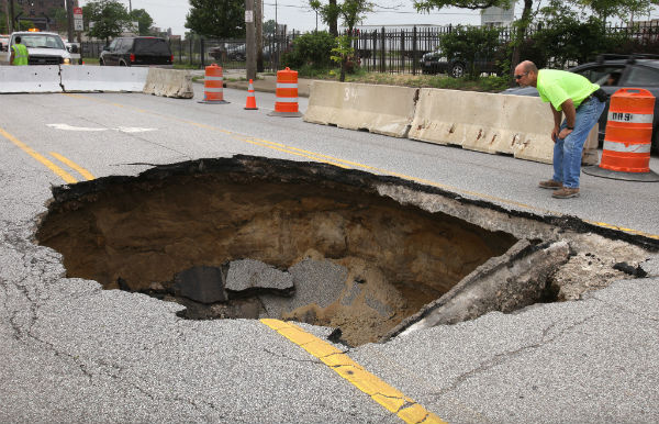 도심에서 생기는 싱크홀의 경우는 도심에 깔려있는 아스팔트들 때문에 땅속으로 물이 스며들이 못하여 지하에 지하수가 고갈되고 고갈된 부분에 빈공간이 생겨 부분 침하 도는 싱크홀이 발생하는 이론도 있습니다.