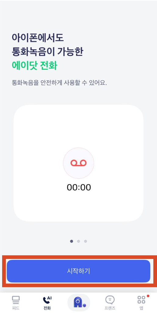 - 앱의 왼쪽 하단 AI전화 버튼을 누릅니다.