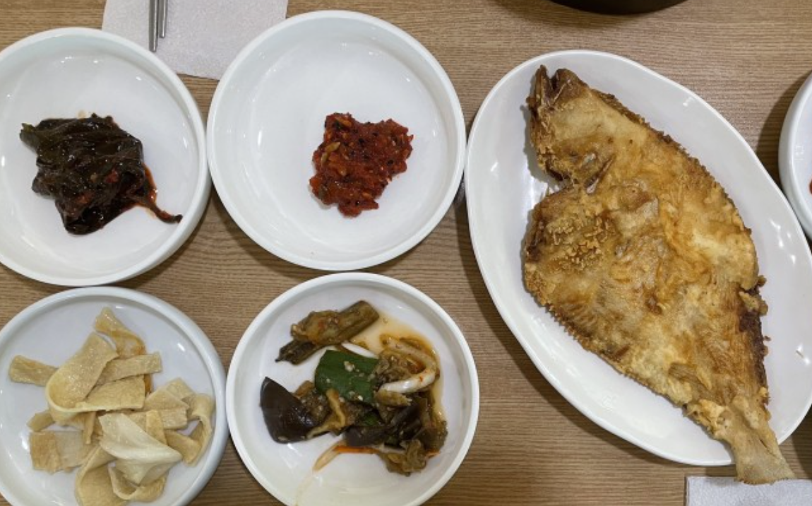 밑반찬은 거의 변화가 없는 편이고 대부분 깻잎무침, 고추무침, 볶음오뎅, 오징어젓갈,김치등이 나오고 테이블마다 인원 수에 맞춰서 가자미 튀기듯 구워 나오는데 이 가자미도 별미입니다. 생선을 좋아하시는 분이라면 추가로 5,000원에 한마리를 구워주시기때문에 추가해서 드시는 것도 추천드립니다.