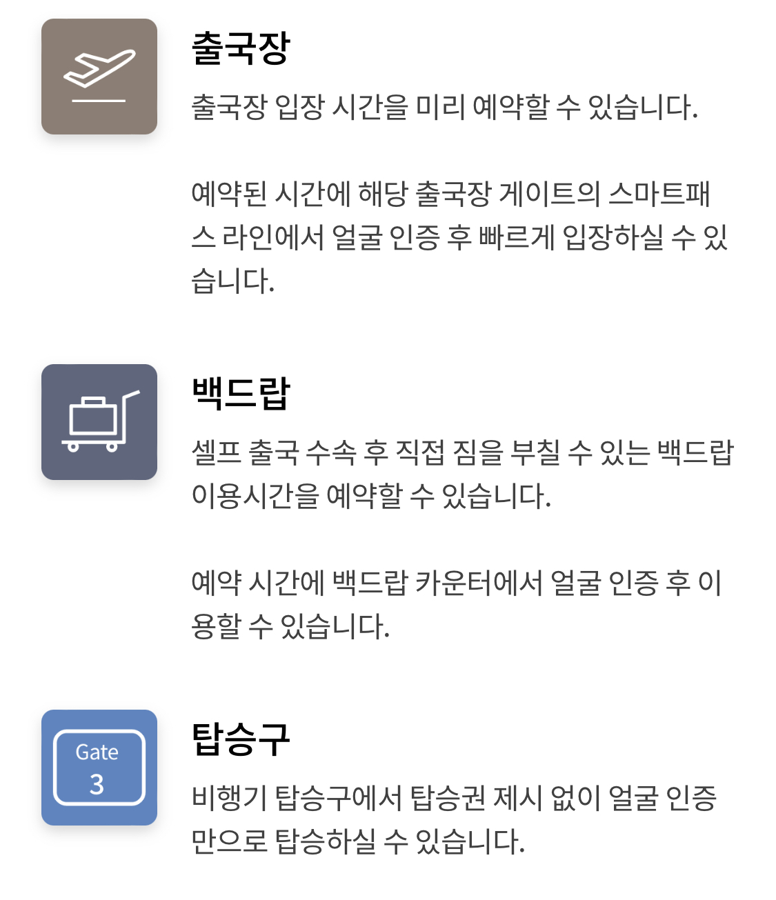 여권이나 탑승권을 꺼낼 필요 없이 빠르게 출국 심사대를 통과하는 서비스