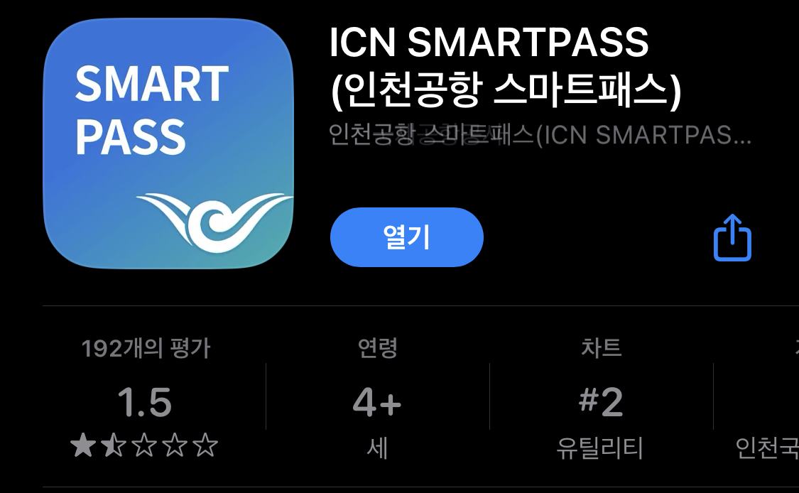 먼저 스마트폰에서 (앱스토어 or 구글플레이스토어) icn smartpass를 다운로드합니다.